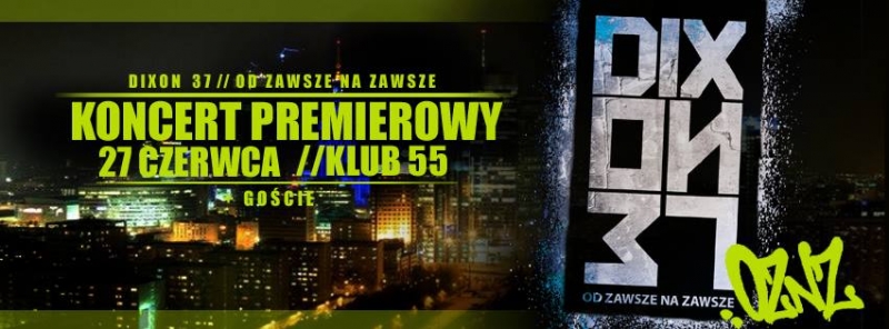 W najbliższy piątek, 27 czerwca, w klubie 55 odbędzie się długo oczekiwany, warszawski koncert promocyjny płyty Dixon37 "Od Zawsze Na Zawsze". Muzycy zagrają w swoim mieście po raz pierwszy z premierowym materiałem. W czasie imprezy za gramofonami czuwać będzie niezawodny Dj Grubaz.