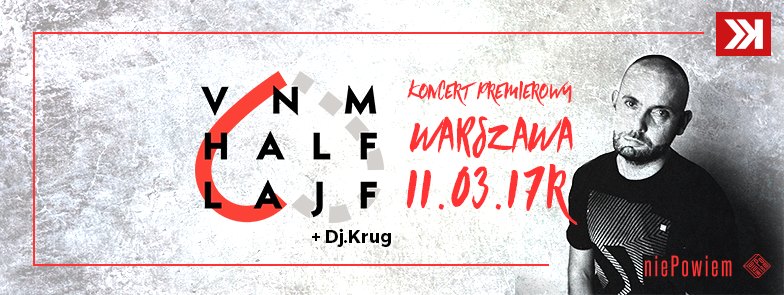 Klub niePowiem zaprasza na koncert promujący nowy album VNMa pt. HALFLAJF. Będzie to pierwszy koncert rapera w Warszawie z nowym krążkiem który premierę miał 9 grudnia 2016.