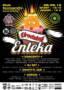 29 września tego roku odbyły się obchodzy 15 urodzin undergroundowego, łódzkiego kolektywu Enteka. Działający od wielu lat entekowcy zorganizowali imprezę, zarejestrowali na niej dostępny teraz dla was materiał video, a na koniec zmontowali koncertowy teledysk. A teraz już zbierają się do organizacji drugich urodzin Centrum Eudezet Label. Hip-hop się kręci bez przystanków. W rozwinięciu zobaczycie jak wyglądała impreza i kto wpadł żeby życzyć ekipie wszystkiego najlepszego.