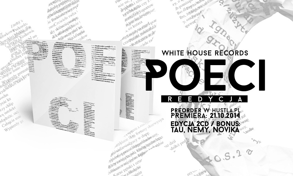 Kultowy album Poeci (prod. White House , 2009) powraca w wersji dwupłytowej. Na reedycji znajdziemy trzy bonusowe tracki oraz wersje instrumentalne utworów. Jak z interpretacją tekstów polskich poetów poradzili sobie Tau, Ńemy i Novika? Sprawdzicie kupując płytę już dziś w preorderze w sklepie www.hustla.pl. W sprzedaży sklepowej pojawi się w dniu 21 października.