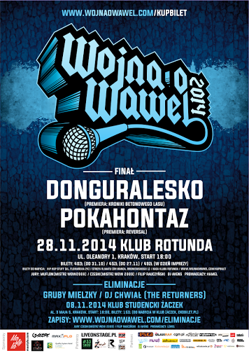 Po 5 latach przerwy do Krakowa wraca legendarna Wojna o Wawel! Cykl imprez rozpoczął swoją historię w roku 2008. Wspaniała atmosfera, profesjonalna organizacja oraz ogólnopolski zasięg przekuły się na ogromny sukces pierwszej edycji. Impreza została zorganizowana z należytym rozmachem i szybko uzyskała miano kultowej. Stanowiło to również preludium do kolejnej edycji w roku 2009. Jej finał uświetnił koncert Pezeta, Małolata oraz Pokahontaz.