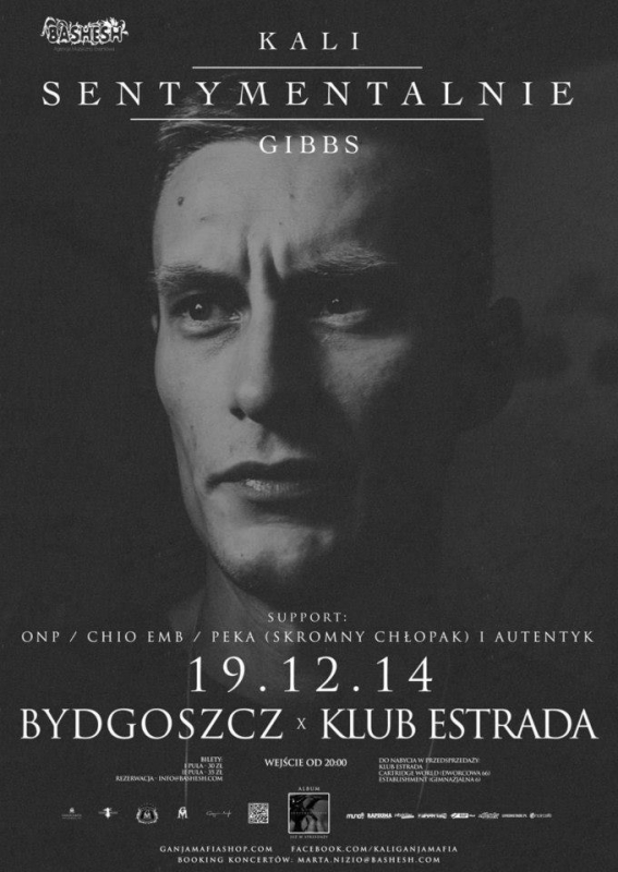 Agencja Muzyczno-Eventowa Bashesh oraz Estrada Stagebar z ogromną przyjemnością zapraszają na koncert Kaliego, promujący jego nowy album „Sentymentalnie”, który odbędzie się 19 grudnia w Bydgoszczy.