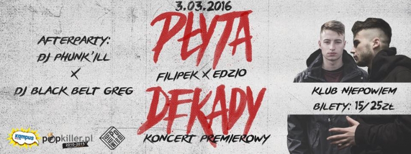 FILIPEK oraz EDZIO wraz ze swoją "Płytą Dekady" zagoszczą na scenie stołecznego klubu niePowiem już 3 marca !
