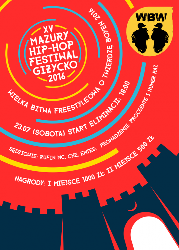 W zeszłym tygodniu poznaliśmy pełny line-up Mazury Hip-Hop Festiwal 2016. Na 15. odsłonie MHHF wystąpią: O.S.T.R., Tede, Sokół i Marysia Starosta, JWP/BC, Hemp Gru, Małpa, Tau, Kali, Sobota, VNM, Te-Tris, Quebonafide, Taco Hemingway, Miuosh oraz Mielzky. Trzydniowe święto hip-hopu w Giżycku potrwa od 21 do 23 lipca. Dziś z kolei organizatorzy ujawnili szczegóły wielkiej bitwy freestyle’owej o Twierdzę Boyen, jaka rozegra się w trakcie festiwalu pod patronatem WBW.