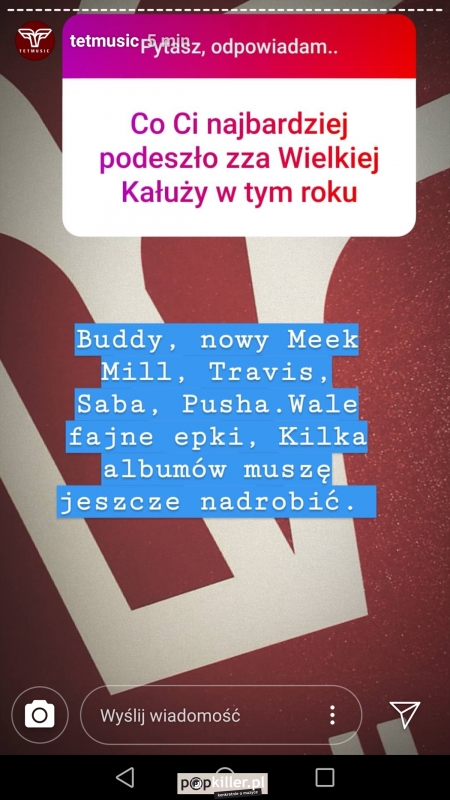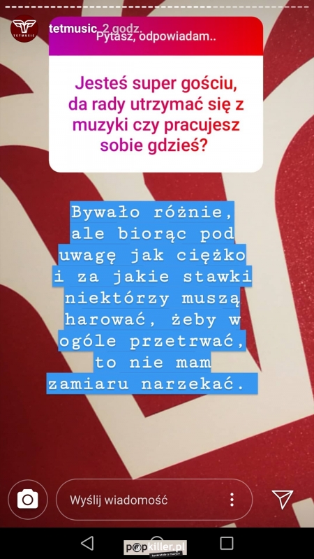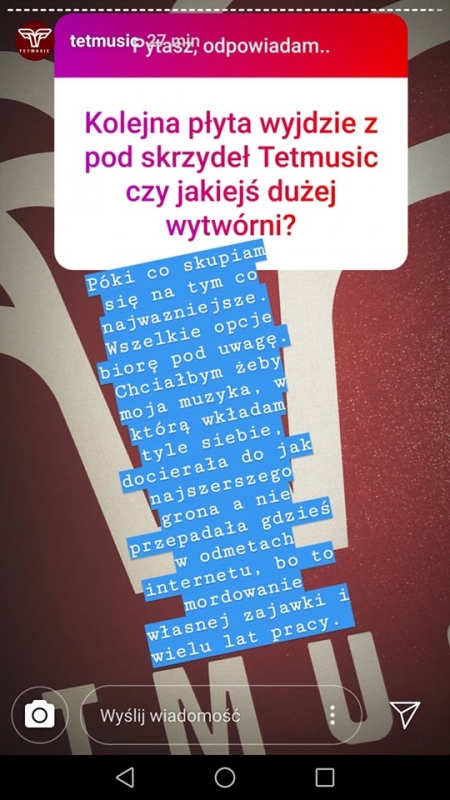 Muzyczne plany czy kolejne projekty, oceny tego co wydarzyło się w minionych 12 miesiącach a także pytania o nowy singiel Tedego, ostatnią współpracę z Laikiem czy potencjalne collaby z Paluchem, Pezetem, KPSN'em i Almost Famous - to tylko część poruszonych tematów. Wszystkie znajdziecie na screenach poniżej.