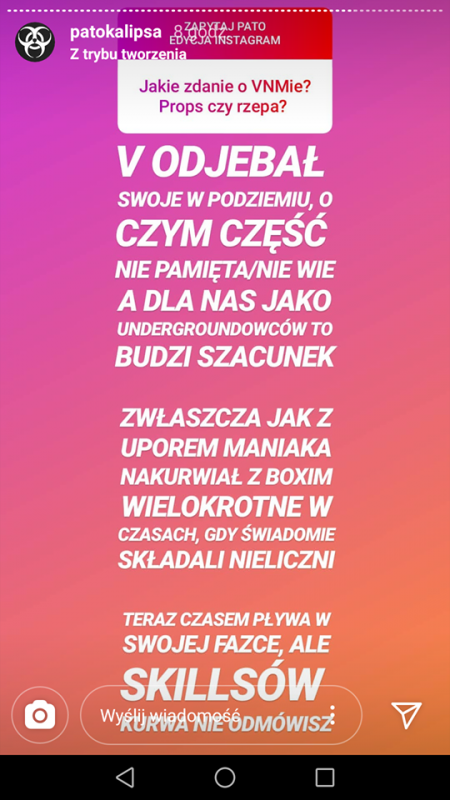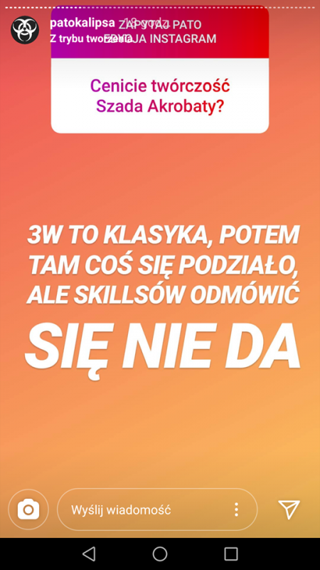 Patokalipsa na swoim Instagramie urządziła potężne i bezkompromisowe Q&A, w którym wypowiedziała się co myśli o wielu reprezentantach polskiej sceny. Odniosła się w tym do akcji promocyjnej Quebonafide i przejścia Penxa do Step Records, zopiniowała twórczość m.in. Żabsona, Okiego, Sentino czy Tedego oraz powrót Tomba. Grupa wyjaśniła też, jak wygląda ich sytuacja wydawnicza.
