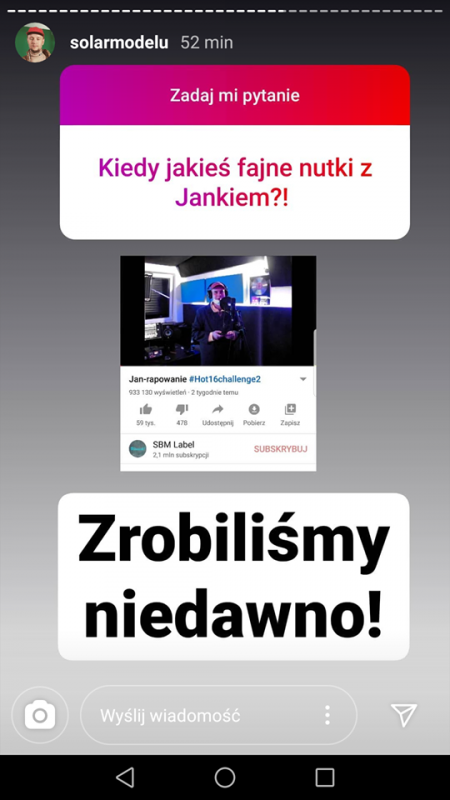Solar odpowiedział na serię pytań - w większości związanych z Hot16Challenge2. Dowiemy się z nich m.in. która zwrotka jego zdaniem wypadła najbardziej oryginalnie, czy doczekamy się wydania akcji w formie CD, a także - kiedy się ona zakończy oraz kto odpowiadał będzie za rozdysponowanie zebranych ponad 3 000 000 złotych.