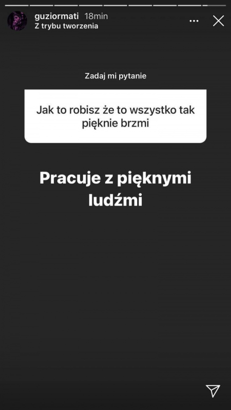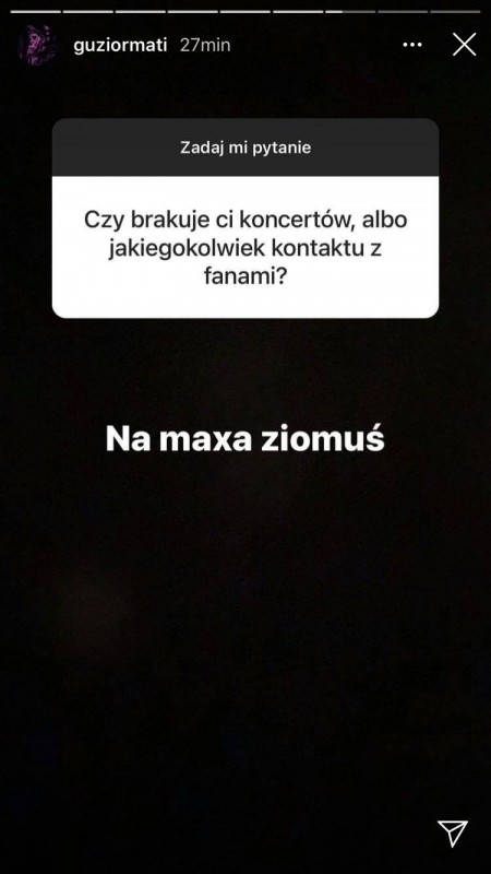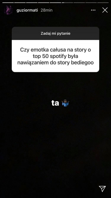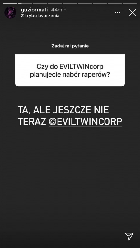 Guzior znany jest ze swojej skromnej aktywności w social mediach, więc uwagę fanów przykuło zorganizowane przez niego krótkie Q&A. Raper zdradził w nim, czy usłszymy kiedyś jego wspólny numer z Matą, czy wersy z "K U S H K O M Y" dotyczą Szpaka oraz jakie plany na przyszłość ma jego label, EVILTWINcorp. Oprócz tego otrzymaliśmy dzisiaj nowy singiel, "B L U E B E R R Y".