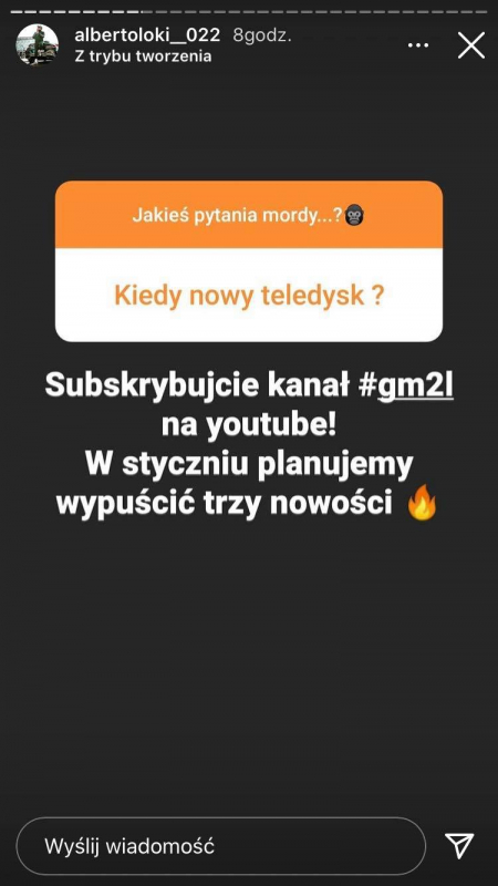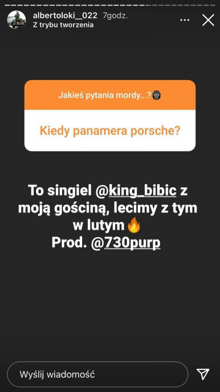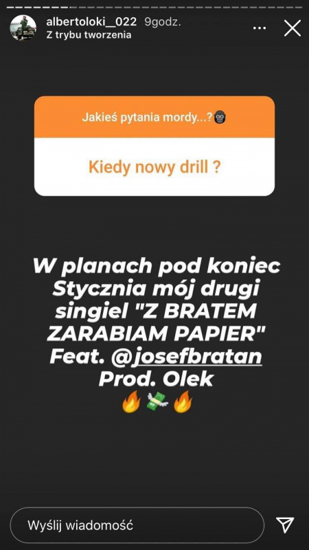 Nie zabrakło też tematów około muzycznych. Podopieczny Malika zapowiedział w tym miesiacy trzy nowości, w tym swój kolejny singiel, "Z Bratem Zarabiam Papier", na produkcji Olka, z gościnnym udziałem Josefa, któy pojawił się już na "HUCPIE" Kaliego i Majora. W lutym otrzymamy natomiast singiel innego podopiecznego szefa GM2L, Bibica, w którym również udzielił się Alberto. Numer będzie nosił tytuł "Panamera Porsche", a jego produkcją zajął się 730Purp. Premiera EP-ki autora "Dwutaktu" przewidywana jest na ten rok. Raper zapowiedział, że ma też do zaprezentowania spory wachlarz umiejętności, nieograniczający się wyłącznie do drillu.
