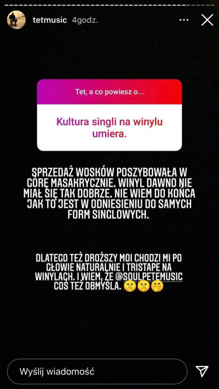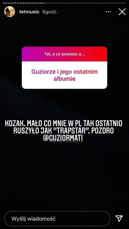 Raper, a obecnie głównie A&R Manager w Warner Music Poland, zorganizował na swoim Instagramie Q&A, w którym odpowiedział m.in. co myśli o twórczości KaeNa po ich beefie, czy muzyce O.S.T.R.-a. Zdradził również co sądzi o zapowiadanym powrocie Pyskatego z "emerytury".