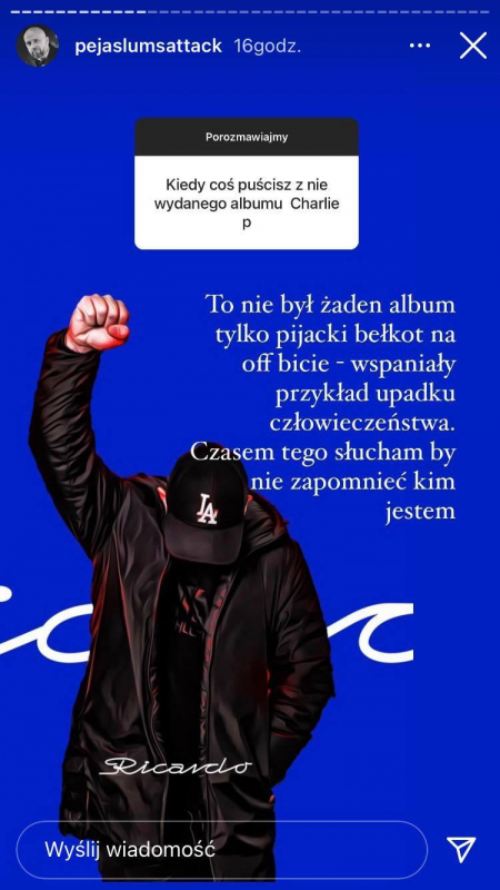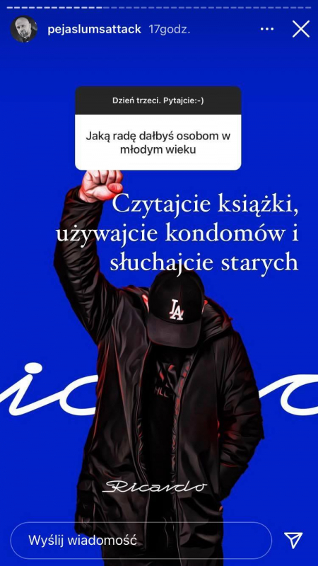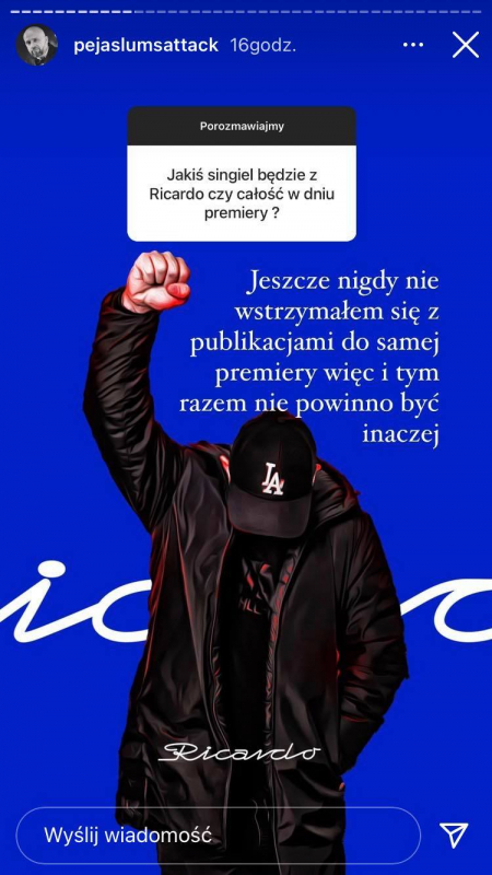 RPS Enterteyment prezentuje pierwszy singiel promujący najnowszy krążek Rycha Peji - Ricardo (Premiera 21/05/21). Za warstwę muzyczną tytułowego utworu jak i całego albumu odpowiedzialny jest jak w przypadku poprzednich płyt - Magiera. Na płycie wielu znakomitych gości: Sokół, Pezet, DonGuralesko, VNM, Kaz Bałagane, Sztoss, John Mojo, Simpson, Hałastra, Shazaam, Perro ZW, DVJ. Rink, DJ. Element oraz DJ. Urlich.
