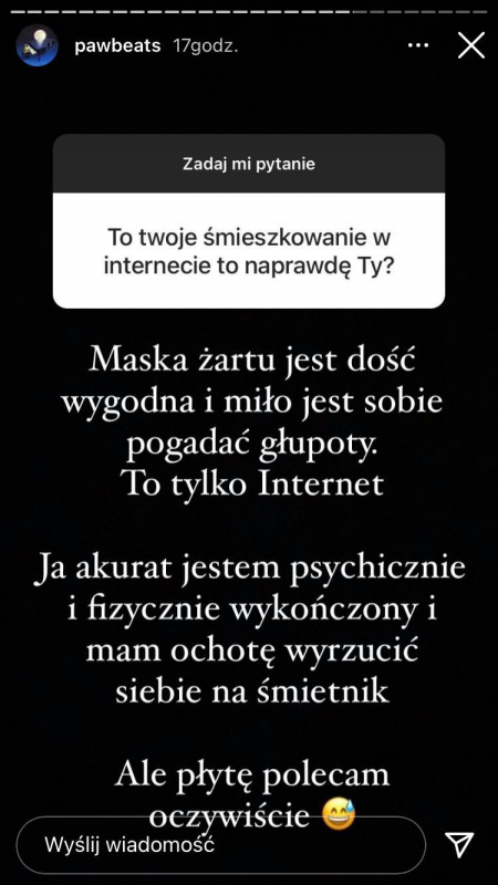 Pawbeats przygotowuje się do wydania swojego następnego albumu producenckiego "NOCNA", który ukaże się za niecałe 2 tygodnie. Producent zorganizował na swoim Instagramie Q&A podczas, którego opowiedział trochę o nowej płycie oraz przyznał, że jest pod wrażeniem Bedoesa i tego jak wiele udało mu się osiągnąć bez wsparcia własnego miasta.