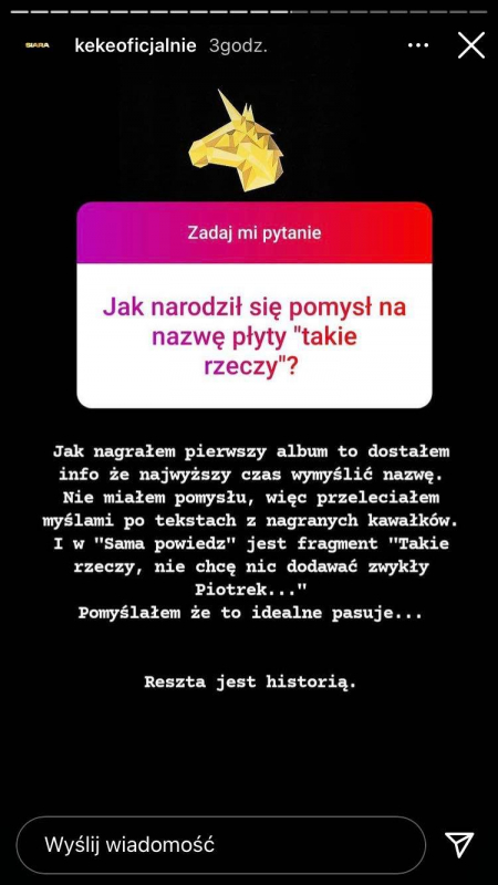 KęKę wydał niedawno swój kolejny album, "SIARA". Raper podczas ostatniego Q&A na swoim Instagramie opowiedział o genezie tytułu swojej pierwszej płyty - "Takie Rzeczy".
