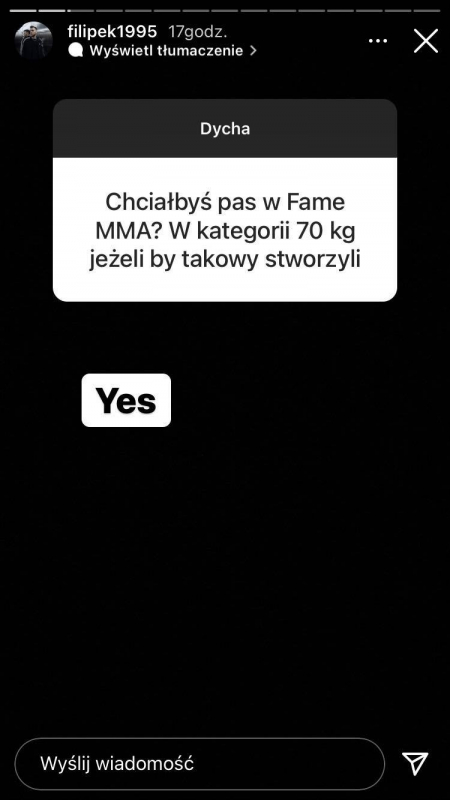 "Biorę, w Open. Niech tylko federacje sie dogadają. Bratan dobry świr." - pisze Filipek.