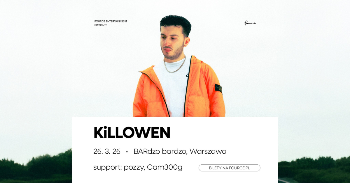 Zbudował również silną bazę fanów dzięki występom na największych scenach — m.in. Reading & Leeds Festival, Parklife, dwóm koncertom na SXSW w Austin (Teksas) i w Sydney, a także jako główny support Songera podczas jego trasy po Wielkiej Brytanii. W przyszłym roku KiLLOWEN nie zamierza zwalniać tempa. Bilety w cenie 99 zł są już dostępne w ogólnej sprzedaży na Fource.pl, eBilet.pl oraz Ticketmaster.pl - do cen biletów mogą zostać doliczone opłaty serwisowe.
