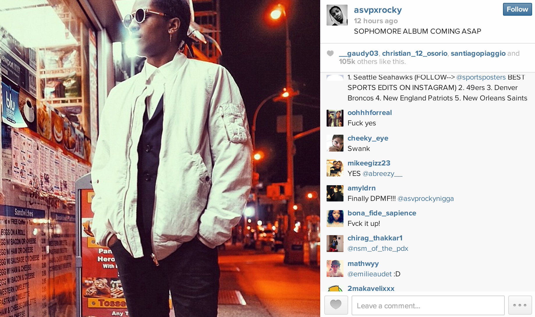 "SOPHOMORE ALBUM IS COMING ASAP" - napisał Rocky na swoim instagramie, przy czym ASAP poza nazwą jego formacji oznacza as soon as possible, i tak powinniśmy interpretować to w tym wypadku. Co znaczy "tak szybko, jak to możliwe" w ustach autora "LongLiveA$AP"? Pozostaje mieć na oku jego kolejne działania, od debiutu (zrecenzowanego przez nas potrójnie) minął już przecież ponad rok.